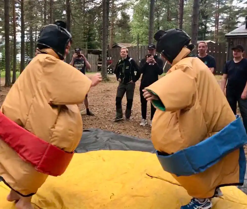 De förekommande disciplinerna är: Boomfighting, Sumobrottning, Stubbdragning, Gladiatorsticks och Bungyrun.