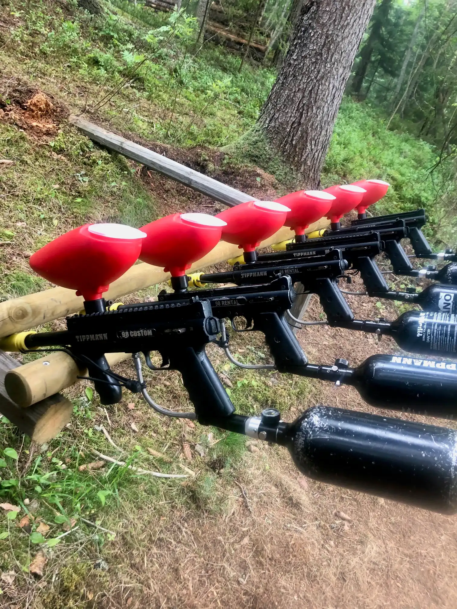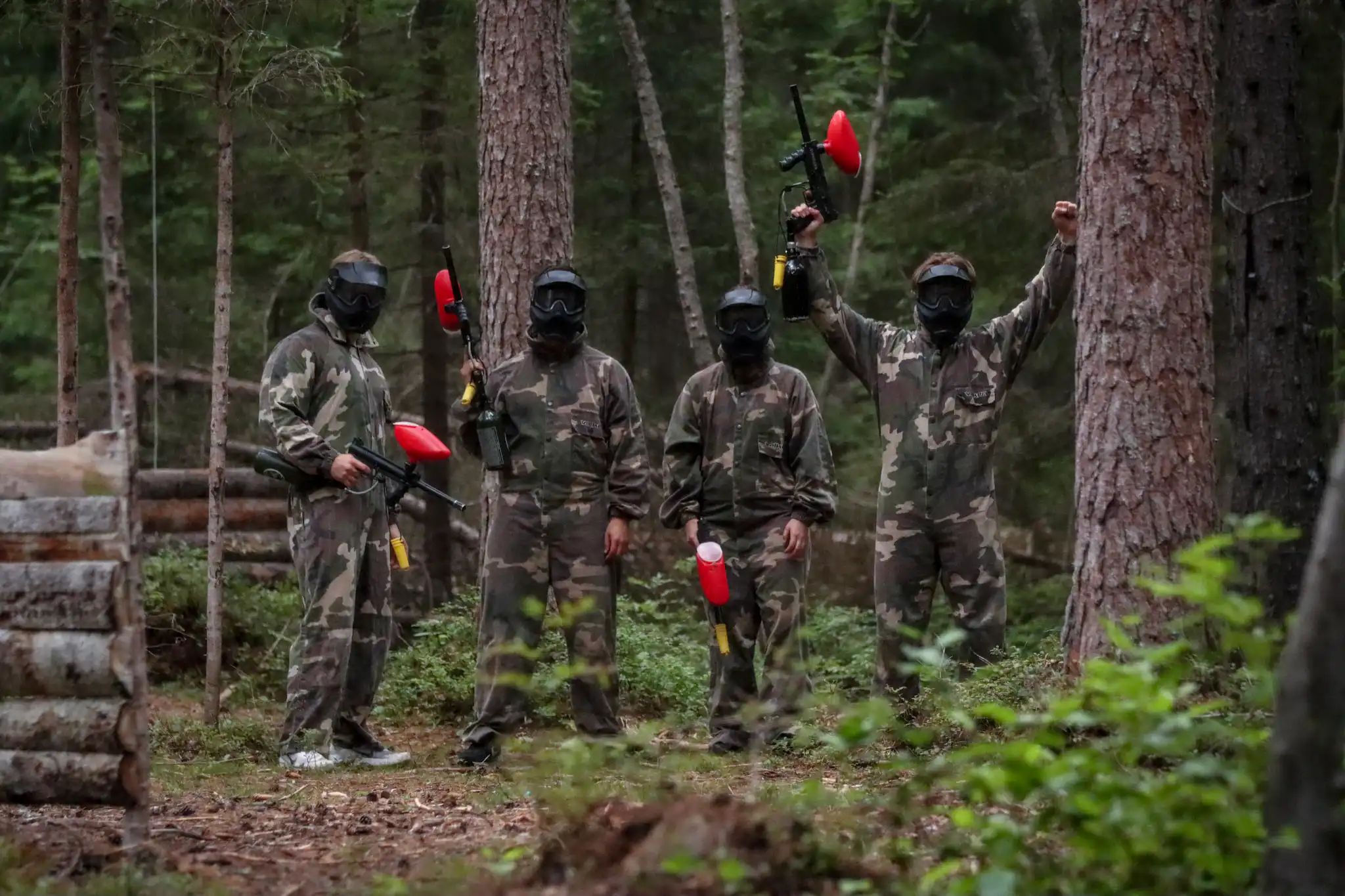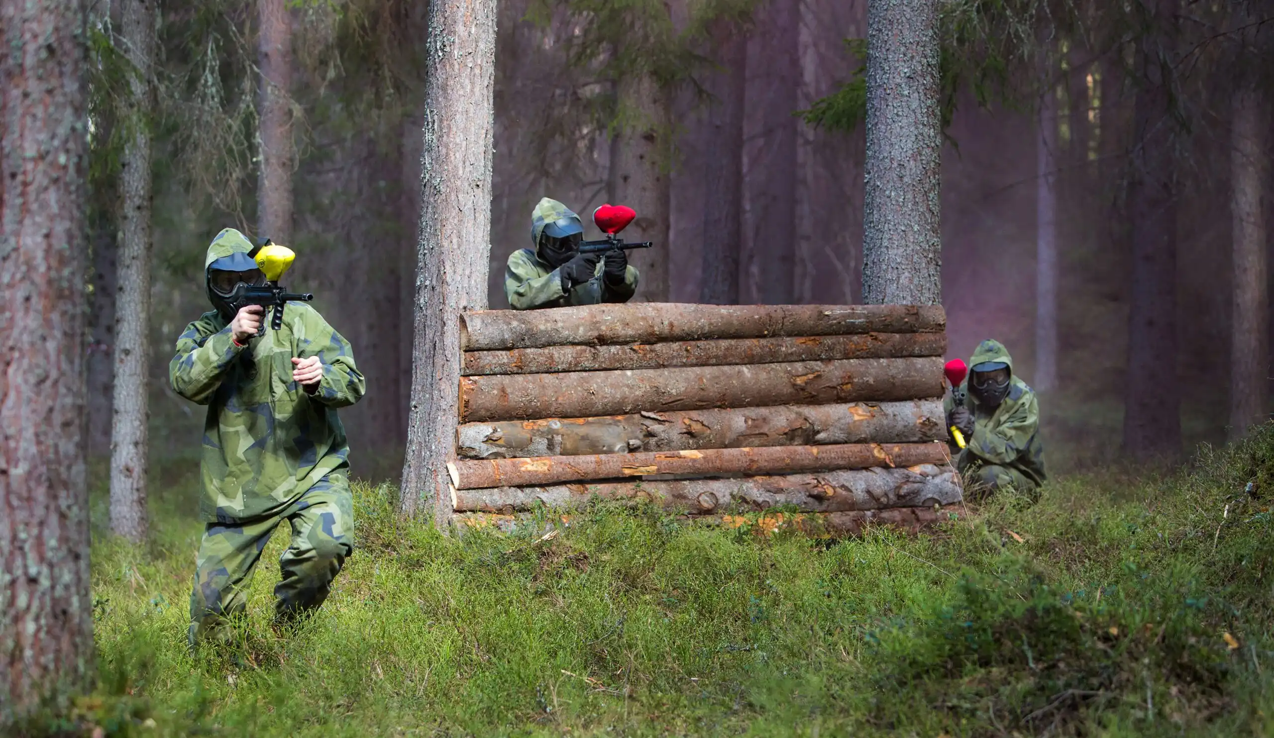 Välkommen till oss och spela paintball. Ett mycket roligt sätt att träffa sina kompisar (speciellt för den som skjuter).