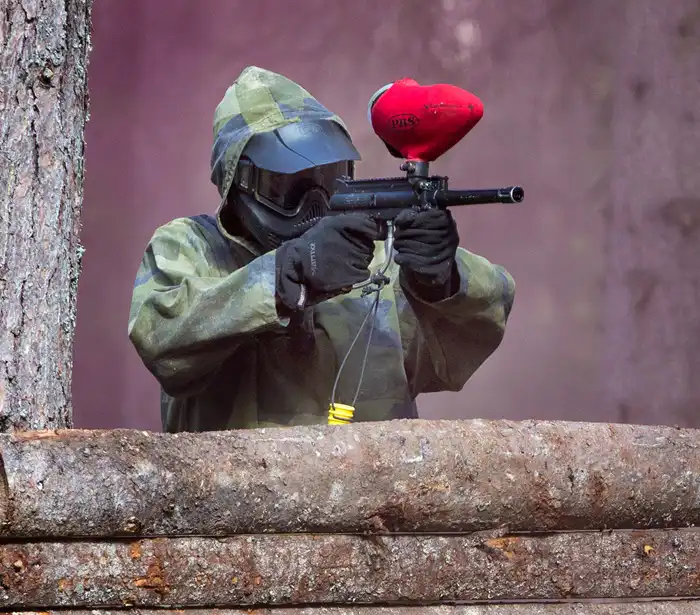 Vi tillhandahåller all nödvändig utrustning såsom skyddsmasker, kamouflagekläder och såklart markören, själva vapnet. Är ni ett sällskap på över 16 personer arrangerar vi en turnering med flera lag.