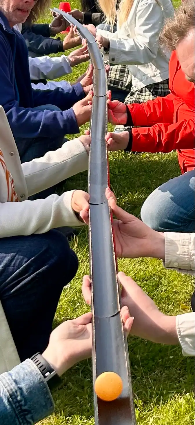 Detta är en teambildande aktivitet där samarbete blandas med en hel del skratt. Instruktören ställer gruppen inför olika problem och sätter upp ramar för uppgiftens utförande och fungerar sedan som observatör under tiden som gruppen löser uppgiften.