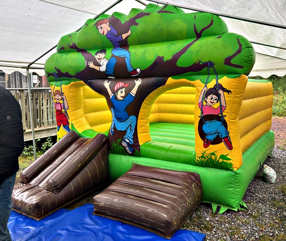 Liten lätthanterlig hoppborg med rejäla väggar, lämplig för de yngre barnen.