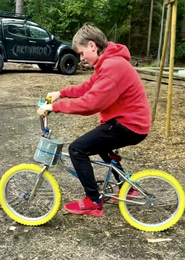 Består av ett mycket rejält gummiband. Den ena änden fästes i tex ett träd eller liknande, den andra änden runt midjan. Spring sedan så långt du kan och ställ ner konan! Lämpliga underlag: Sand, gräs eller något annat mjukt…