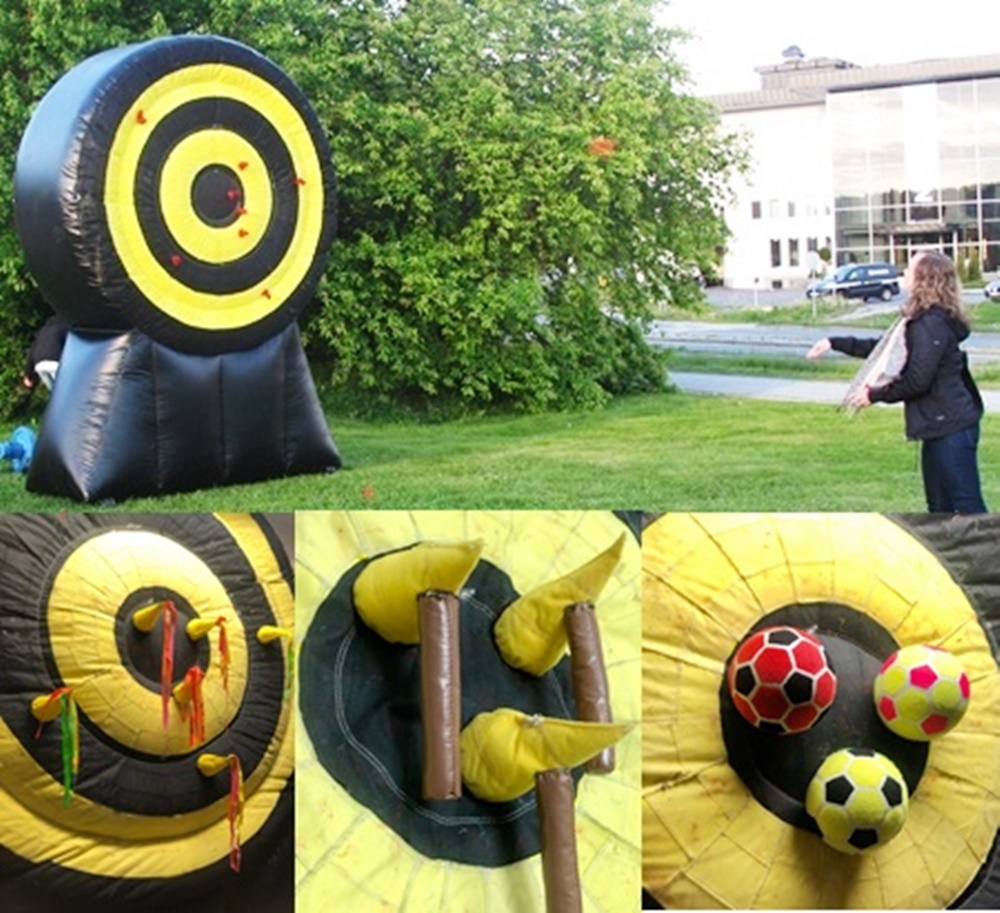 Tavlan är ca 3,5 meter hög fylld med luft från en 240 v fläkt. 6 pilar, 3 yxor och 3 fotbollar ingår. Tavlan är 2,5 M i diameter.