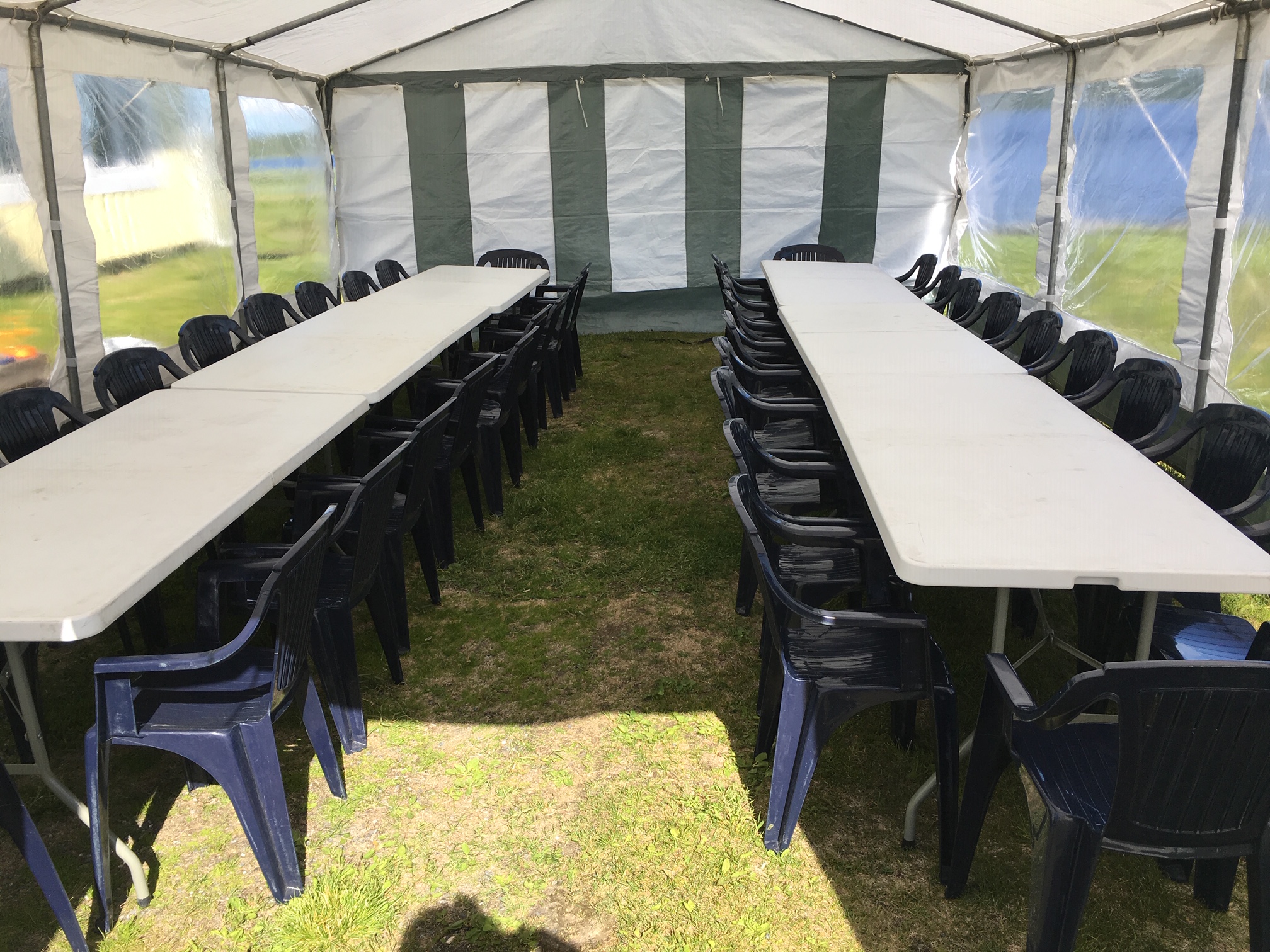 Tältet rymmer max 50 sittande personer vid två långbord.